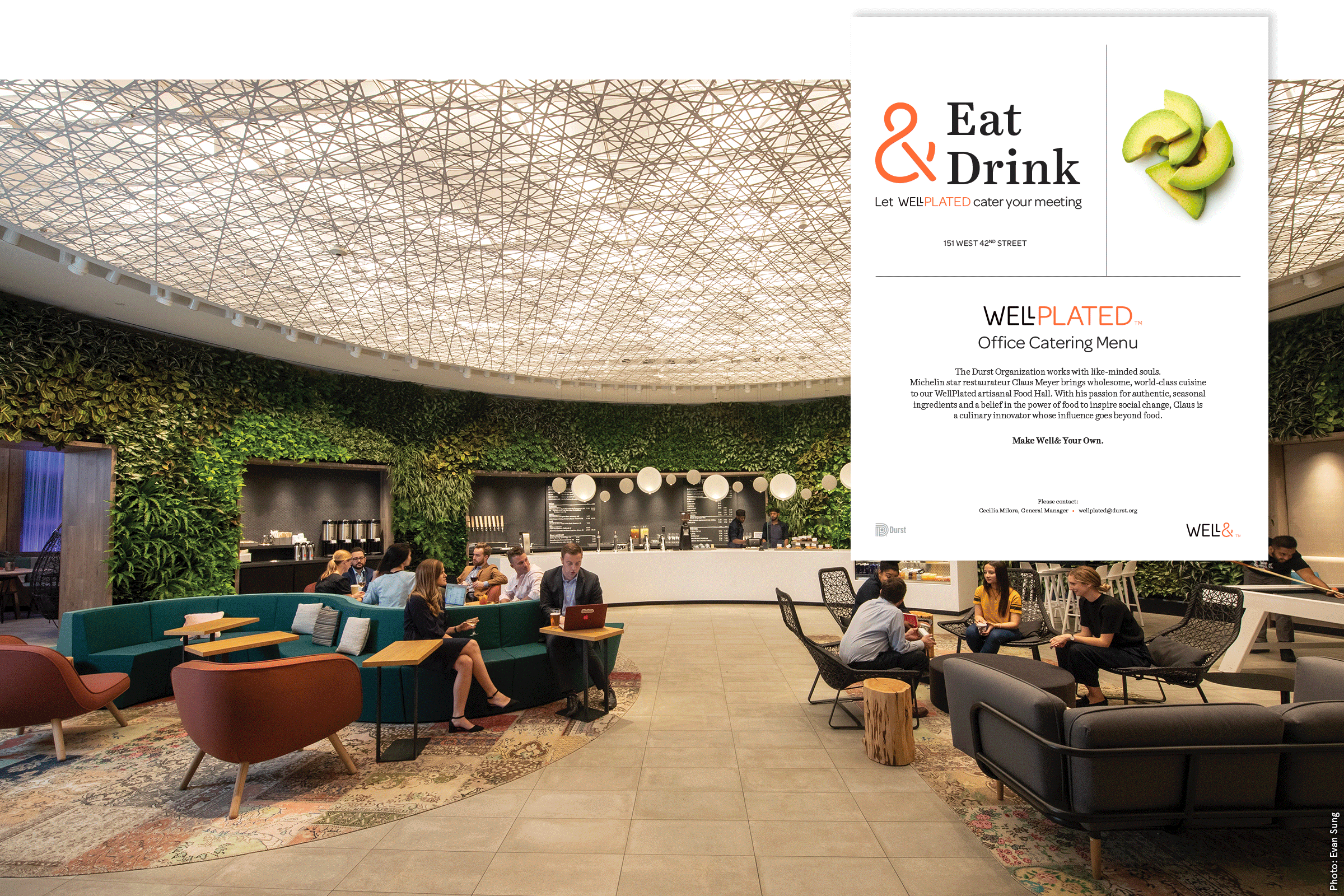 Well& is the Durst Organization’s amenity brand, known for its Frank Gehry cafeteria, lush cocktail bar, state-of-the-art conference rooms, and curated events. Strong Studio refreshed and maintained the revolving door of monthly assets.