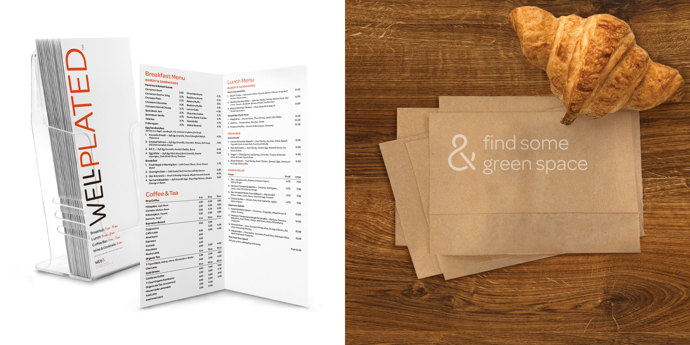 Strong Studio constructed a minimalist, modern aesthetic for the menus, catering packages, and tableware sprinkled throughout the 15,000+ square foot space.